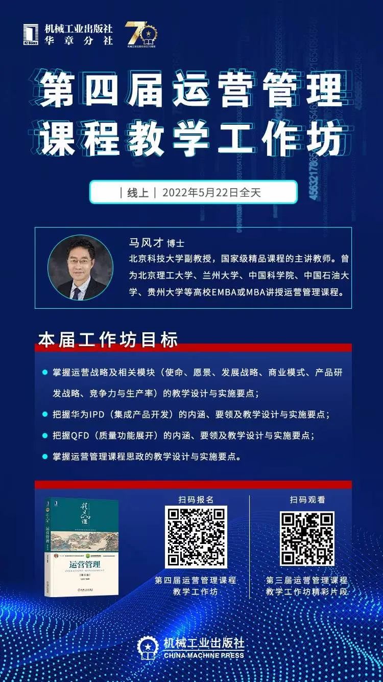在一天的线上教学工作坊中,与会老师们反映很有收获。不过,这只是个开始,有兴趣的老师今后还可识别海报上的二维码,一年内反复观看回放视频,并在微信群里与马风才老师及其他同行进行互动交流,相互促进,共同提升运营管理课程的教学水平。