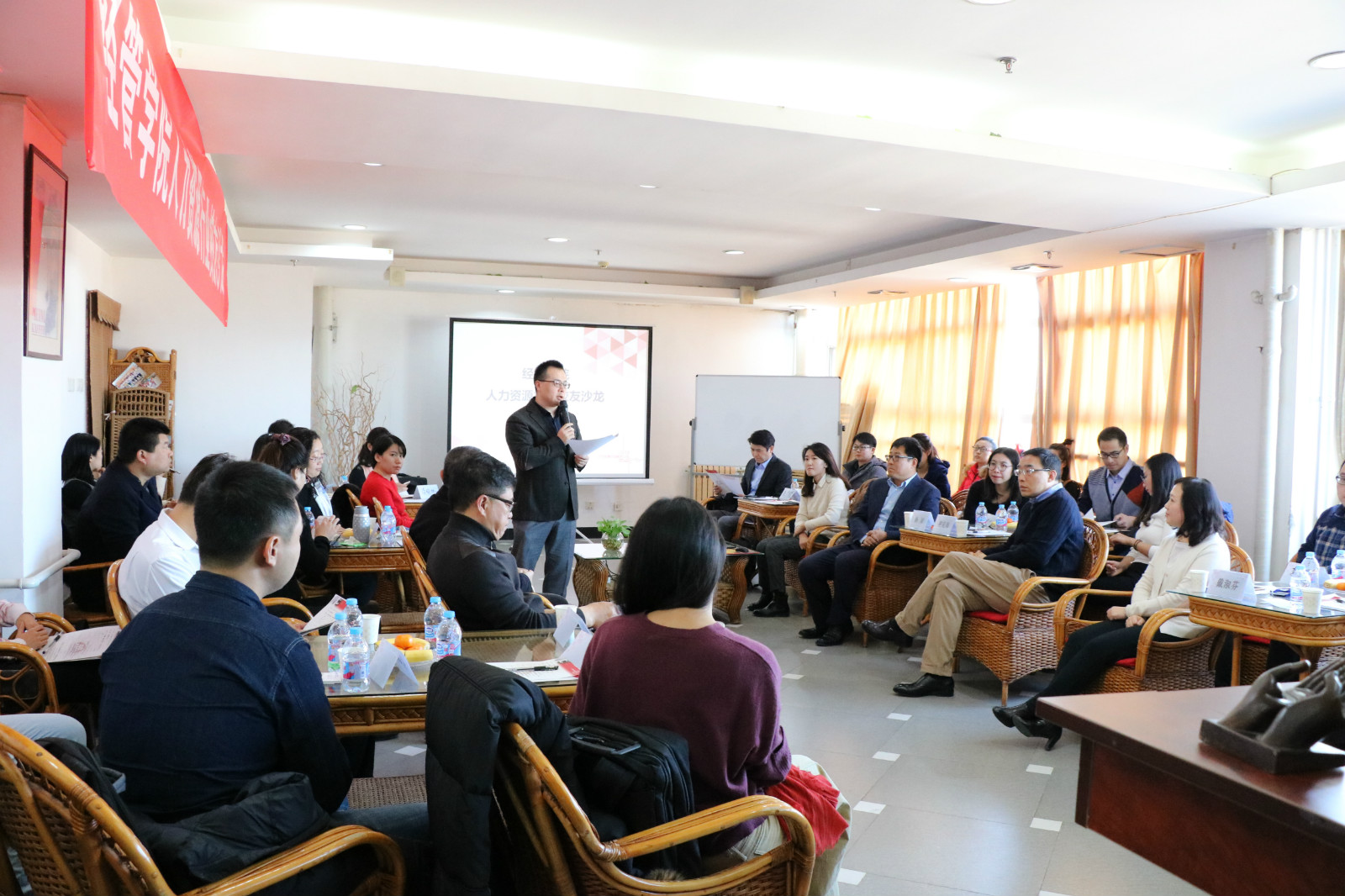 沙龙由我院MBA2000级校友、北科大MBA校友会常务副会长、英诺创新空间合伙人李长麟主持。本科82级、硕士88级校友、北大方正集团总裁兼首席执行官谢克海,MBA2000级校友、华彬航空集团副总裁兼人力资源部总监胡明,MBA2002级校友、万年基业控股集团公司助理总裁、万年基业文化旅游产业集团人力资源管理合伙人杨城分别在活动中依次作了精彩的主题分享。