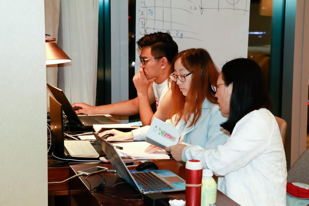 9月19日晚上20:00,主办方准时下发总决赛之初赛案例《创业十年路,起步到扩张:“喜泊客”未来走向何方?》。此时大家还在赶往义乌的路上,而收到案例的那一刻,队员们就像是战士听到了冲锋号,各自翻看案例,迅速进入备战状态。晚上十点多,战队开始了第一轮讨论,初步设定了可行方案。第二天上午,大家针对方案再次讨论,第一轮方案属于‘大众方案’,人人都能做、都会做。而超级王牌战队的成员们则时刻保持着警醒,告诫自己,我们是奔着冠军而来。每一次讨论出的方案,被同伴问得语塞时,队员们明白,更高水平的优质方案即将诞生。对此,队员们展开一轮又一轮的深入分析,方案讨论……