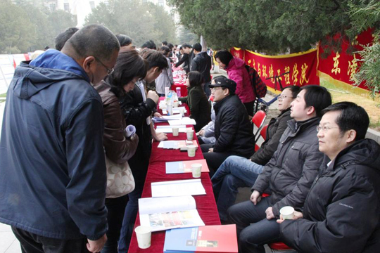 高考临近,为了让考生及家长更好地了解学校情况,亲身体验校园环境,北京科技大学于4月21日上午举办北京科技大学校园开放日活动暨2013年高招咨询会,中国科技大学、南开大学、北京交通大学、北京邮电大学、中国矿业大学、中国地质大学(北京)等多所京内外知名高校也来我校参加此次活动。东凌经济管理学院在副院长高学东老师和党委副书记温雅老师的领导下,各系教师代表参加了此次开放日活动,为到场咨询的考生及家长详细介绍东凌经济管理学院的具体情况。