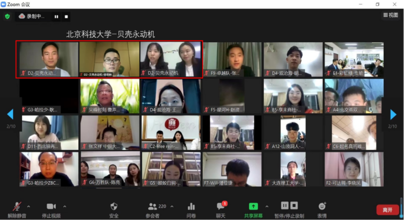 北京科技大学作为国内一流大学,拥有多年的MBA先进办学经验,我校MBA学员积极参加各种知名商业赛事,把所学所知应用于实践,正是北科“志远立业、人和立身、大爱立德”MBA精神不断鼓舞着每一届学子不断开拓进取,上下求索。在历年的比赛中MBA中心给予了极大的支持和帮助。今年疫情期间,赛事主管孟丹老师,特地向学校申请了专属教室供“贝壳永动机”队伍决赛使用,指导老师胡玲老师帮忙联系历届学长学姐们无私支持,同届同窗们的热情相助,激烈的线上模拟角逐、团队海报在线投票等等,每一个环节都离不开学校提供的平台、老师们给予的指导……所有这些才能让“永动机”走到最后,看到更多走得更远的优秀队伍,体会有多少付出才会有多少回报的欣喜。