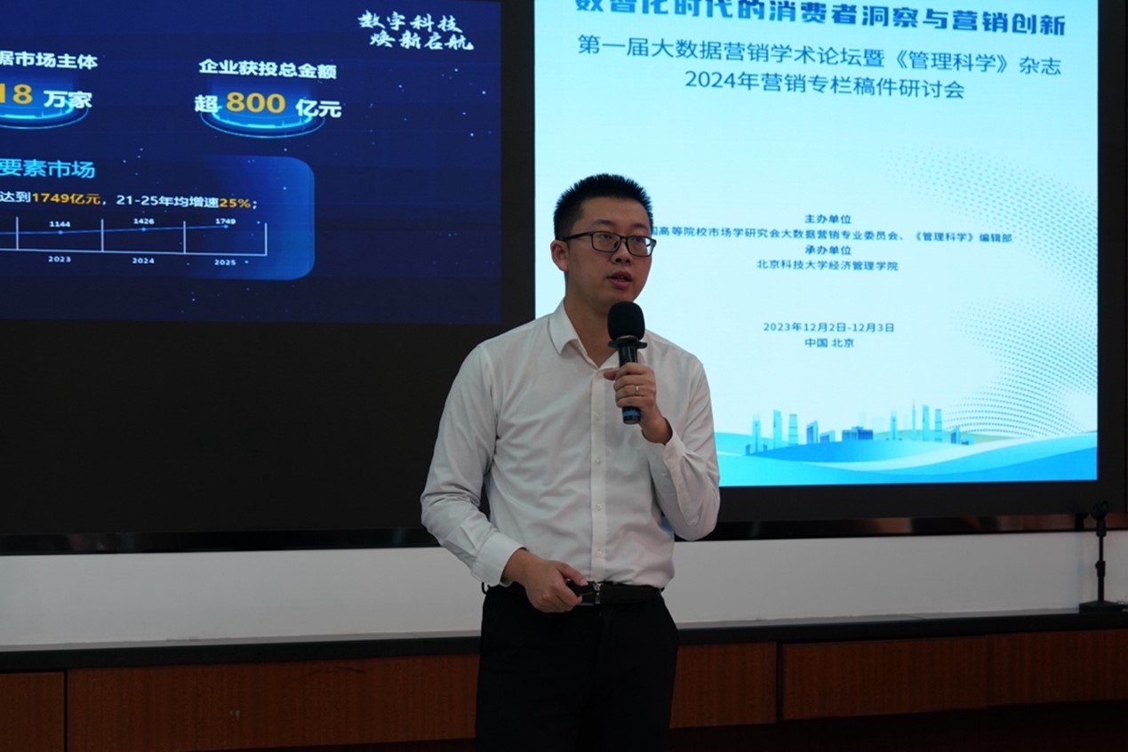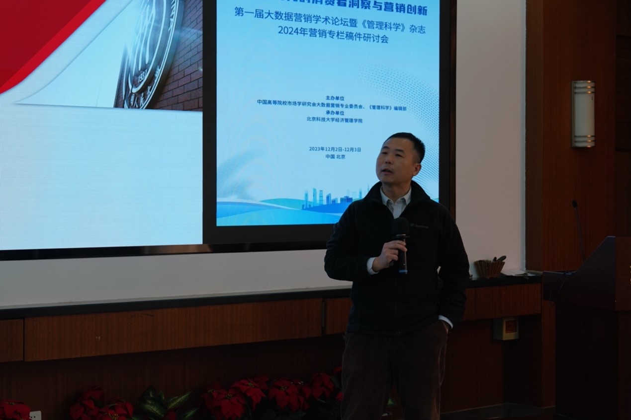 2023年12月2日-3日,第一届大数据营销学术论坛暨《管理科学》杂志2024年营销专栏稿件研讨会在我院召开。本届论坛由中国高等院校市场学研究会大数据营销专业委员会和《管理科学》编辑部联合主办,北京科技大学经济管理学院承办。论坛以“数智化时代的消费者洞察与营销创新”为主题,旨在凝聚大数据营销领域的专家、业界人士和青年学者,共同推动数据驱动式营销创新的研究与实践进展,为从事大数据营销教学和研究的同仁提供合作交流的平台。论坛邀请多位国内知名学者和行业专家做主题报告,分享大数据营销领域最前沿的学术及业界成果,共有80余位来自国内40余所高校的专家、学者和学生参会交流。