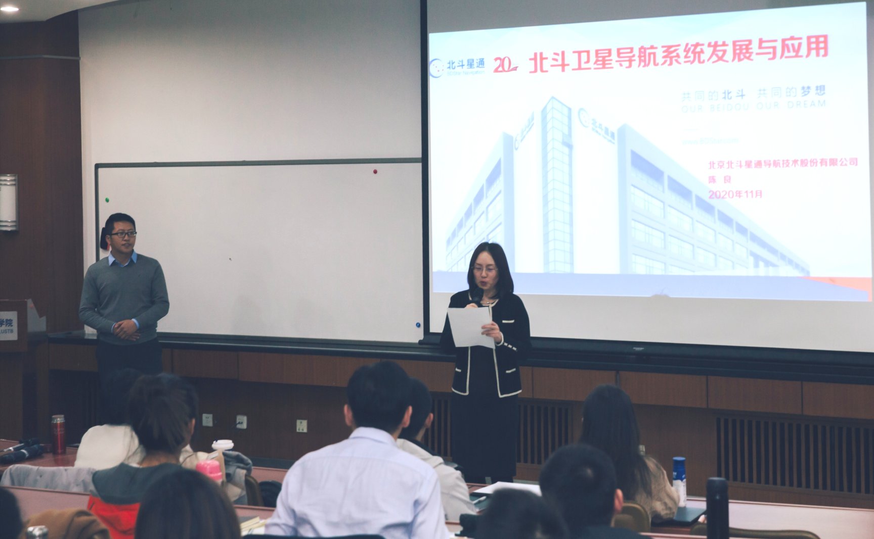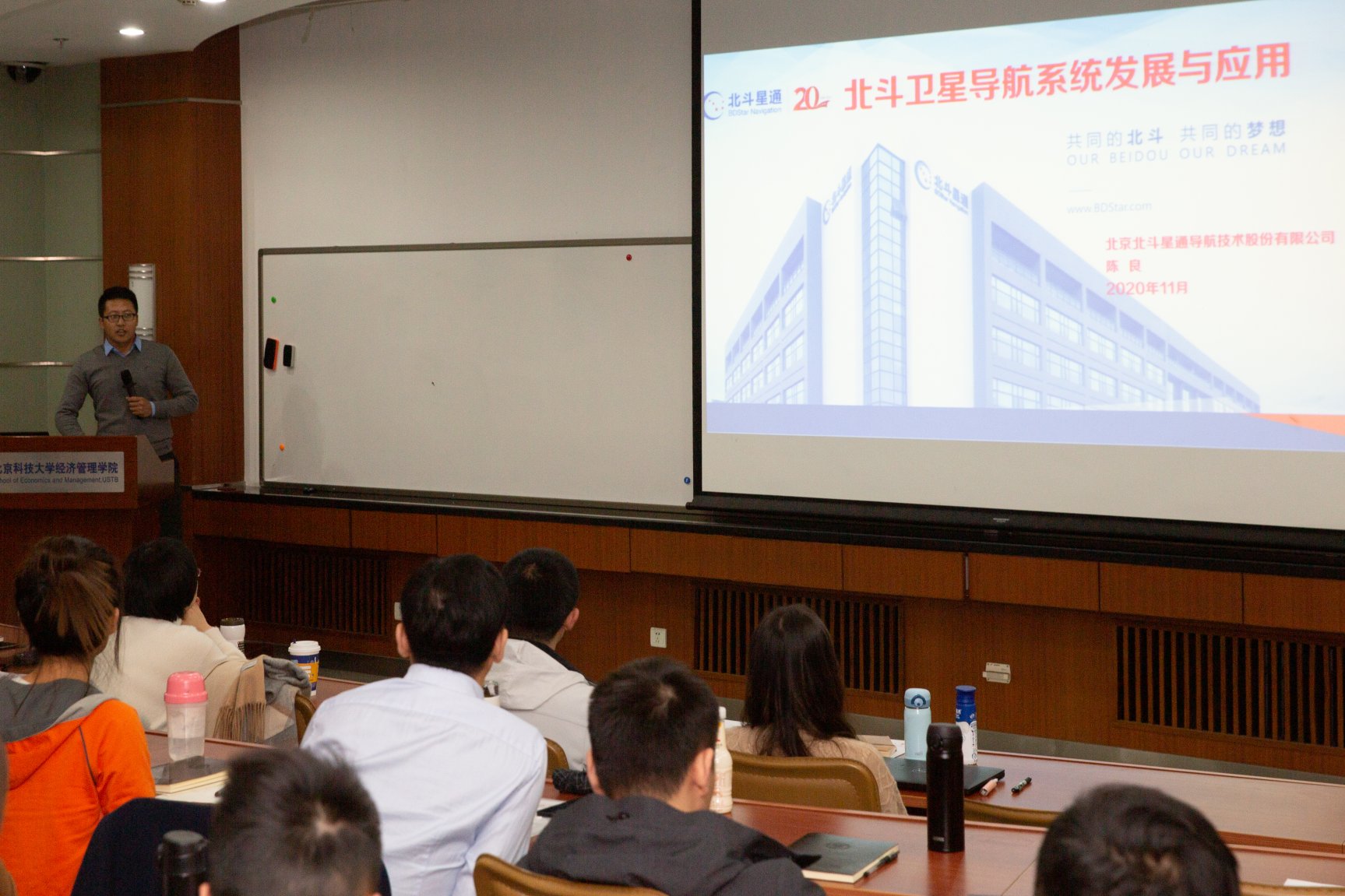 2020年11月21日晚,北斗星通集团公司研究院博士后技术总监陈良博士受邀为北京科技大学MBA集中班做专题讲座,专硕中心李晓静主任以及集中班的五十余名同学参加了本次讲座。