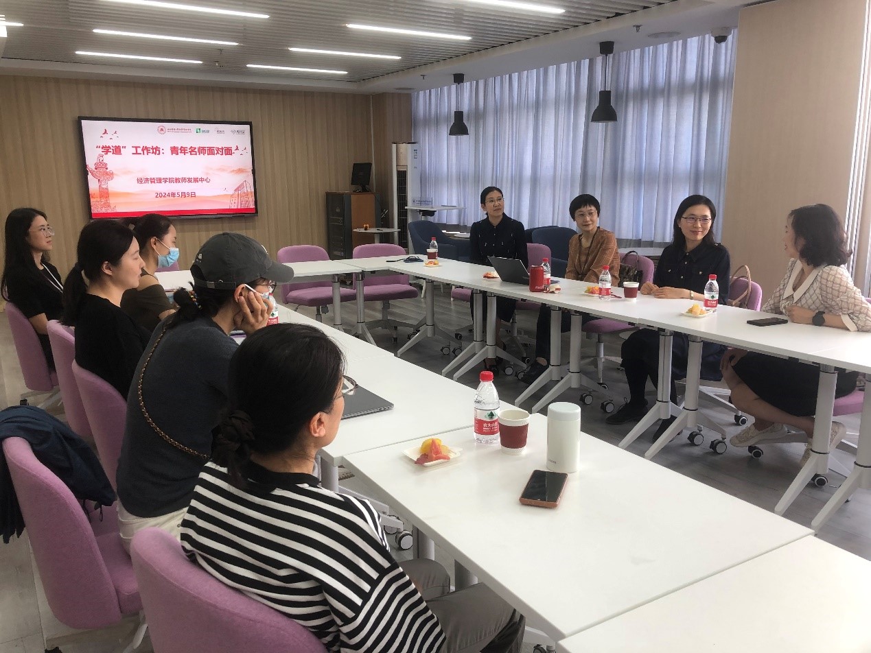5月9日下午,经济管理学院教师发展中心在经管课栈(经管楼1205)举办题为“青年名师面对面”的“学道”工作坊,邀请北京市高等学校青年教学名师、北京科技大学数理学院储继迅教授与青年教师面对面深入交流。学院教师发展中心执行主任孙莹主持工作坊,副院长范小华参加本次交流活动。