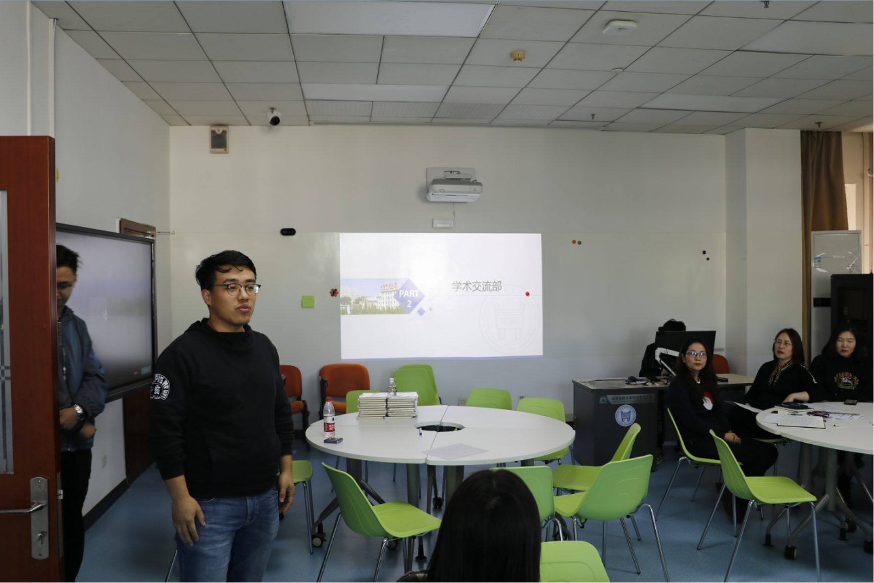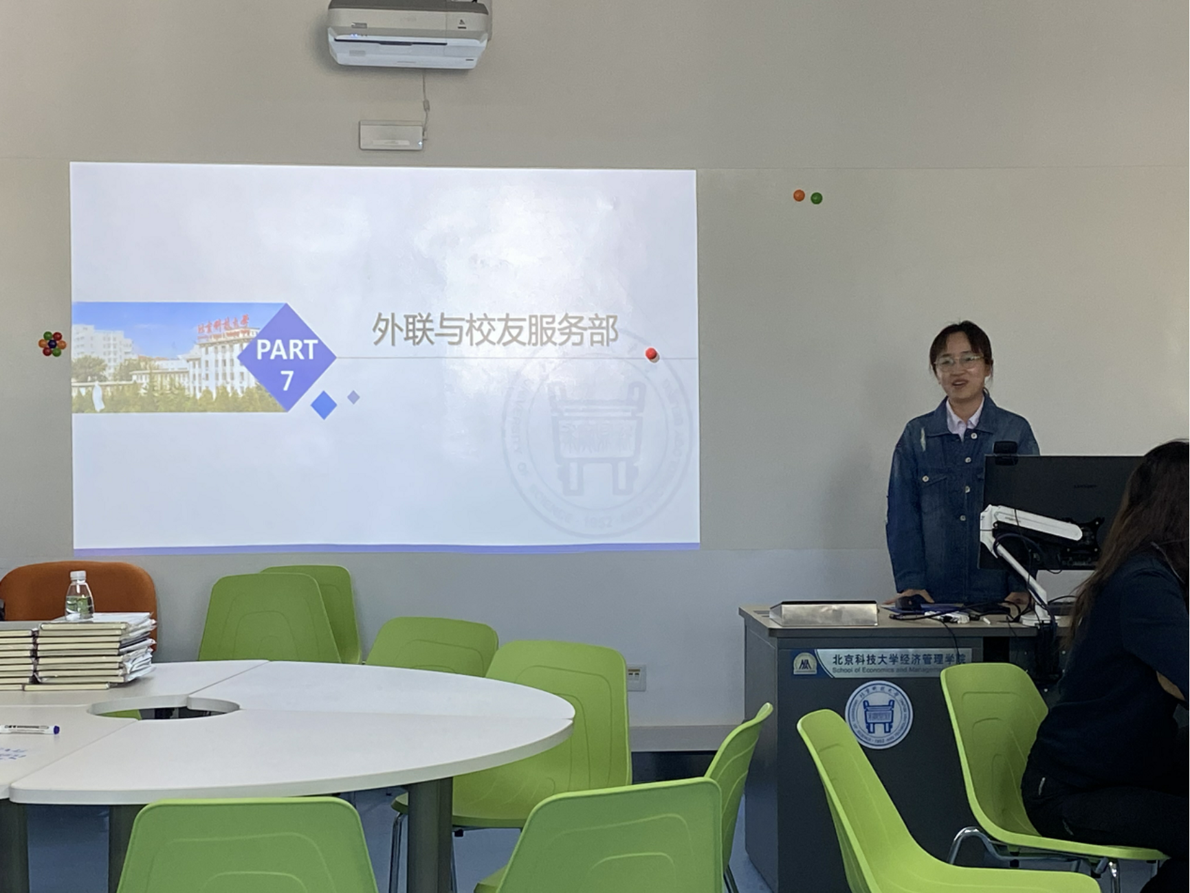 曹部长详细介绍了部门的主要的工作内容以及一年以来与老师和其他部门合作进行高效工作的经历。