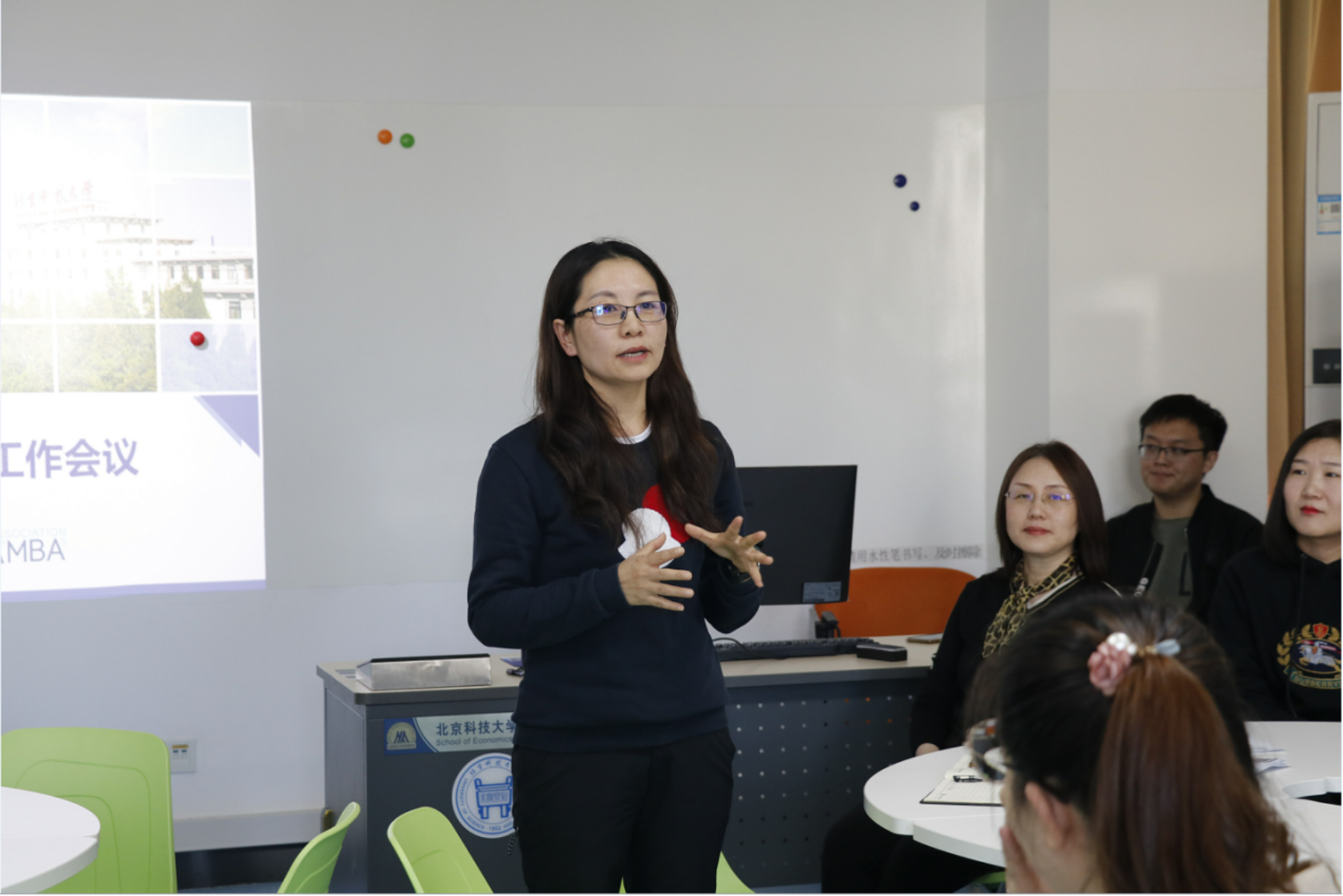 为方便新同学开展工作进行有效联络,陈欢老师首先介绍了参会MBA中心老师的主要岗位职责。