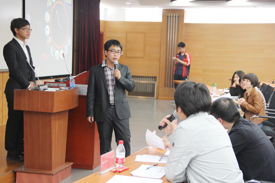 2013年4月22日星期一晚7点整,北京科技大学管理协会协同联通公司共同举办的“联通杯”校园营销大赛在管楼210 开展了复赛的第一场角逐。东凌经济管理学院苏玲老师、赵珂老师、联通公司代表宋平、王钊、2011级辅导员周政奇以及第三届营销大赛的冠军李思纯,出席了本次复赛并担任评委。“联通杯”营销大赛复赛由自由营销和PPT答辩组成,在PPT答辩的环节中,参赛选手需要对其营销策划,营销成果和感想做出简要的阐述。
