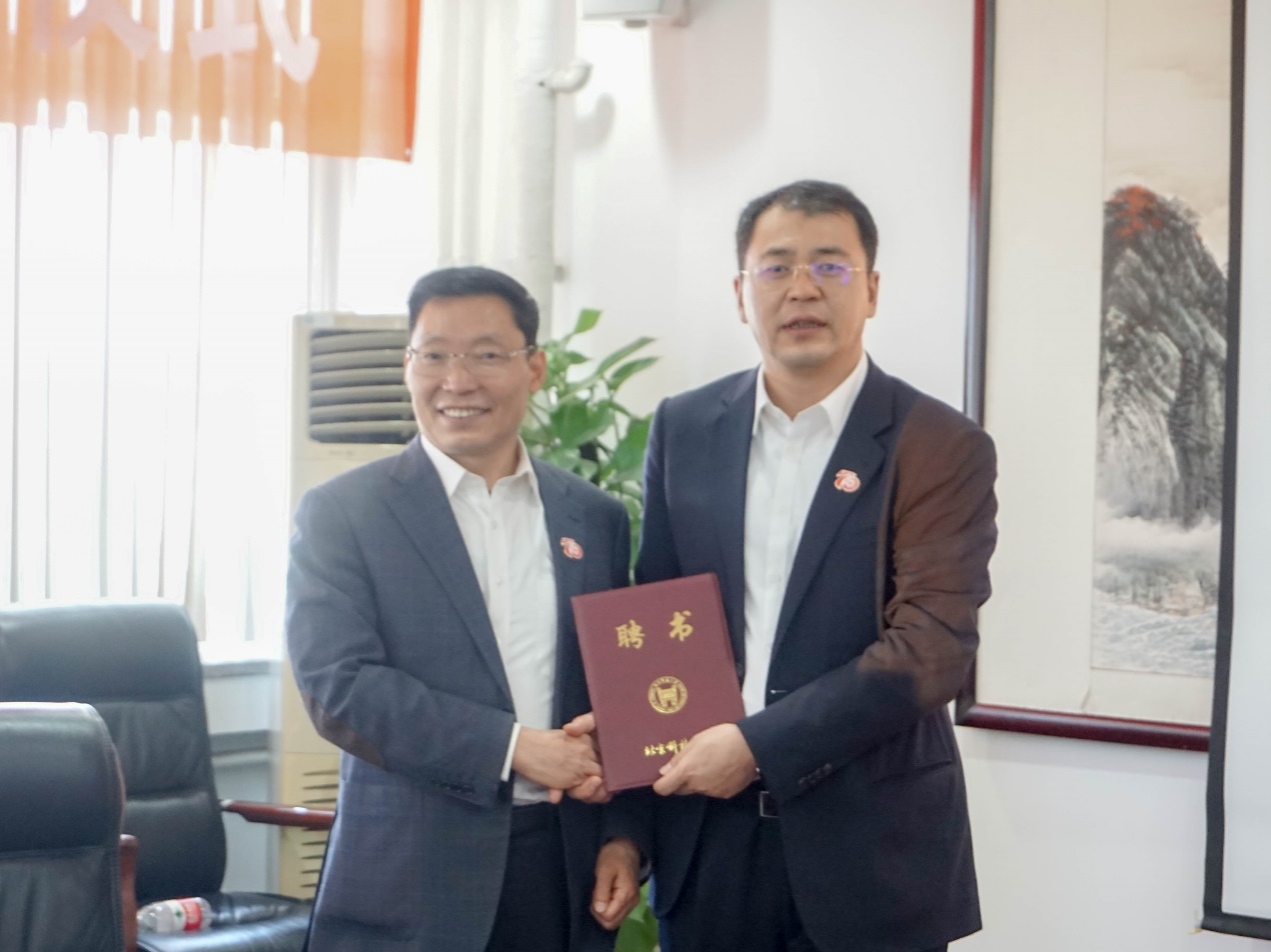 闫相斌为刘峰颁发学校兼职教授聘任证书