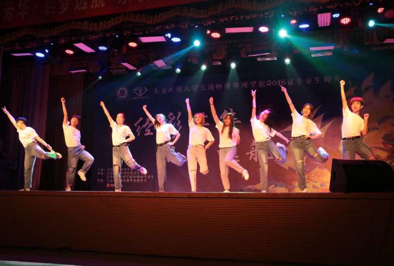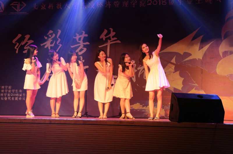 晚会由视频《毕业,不说再见》开场,伴随着视频中音乐相册的翻动,一幅幅大学生活的照片映入眼帘,一张张稚嫩的笑脸刻入脑海,时光荏苒,岁月如流,这本音乐相册见证了18届毕业生们的青春年华与成长蜕变。王翔、李自雄、宿莎莎、薛梅四位毕业生献唱的《如果我们不曾相遇》,歌声悠扬,感人肺腑,唱出了对北科难以割舍的情怀,唱出了对经管难以磨灭的记忆。