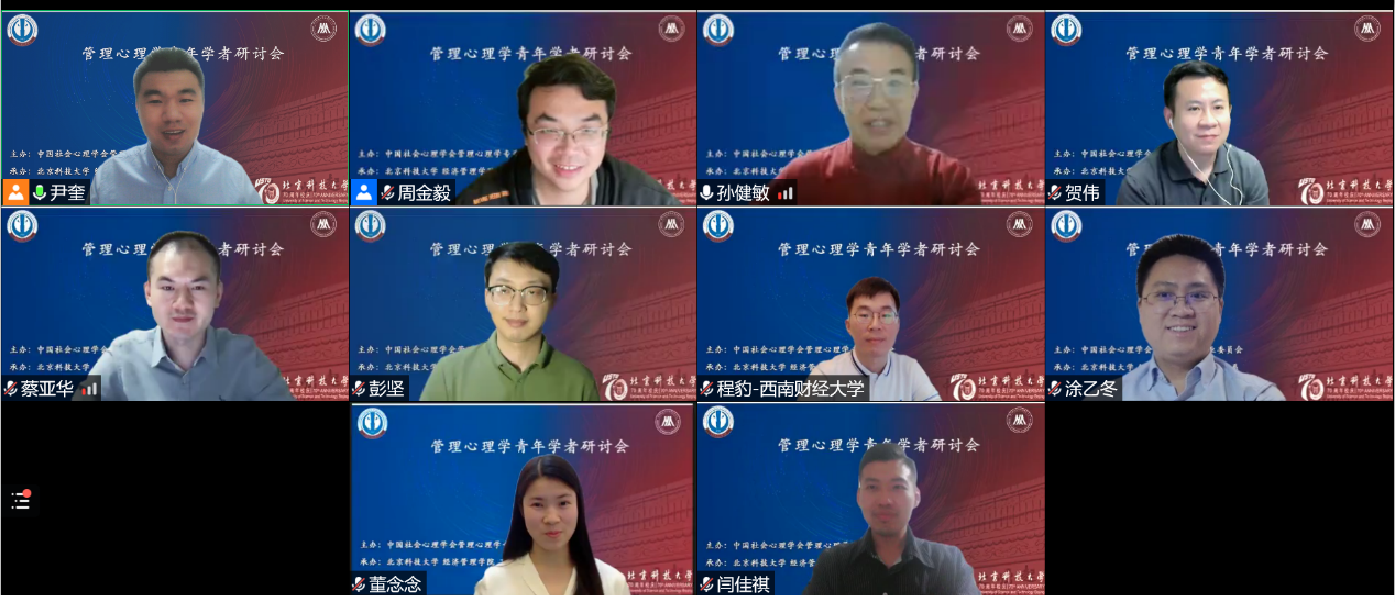 2022年5月21日,由中国社会心理学会管理心理学专业委员会主办,北京科技大学经济管理学院工商管理系承办的管理心理学青年学者研讨会成功举办。