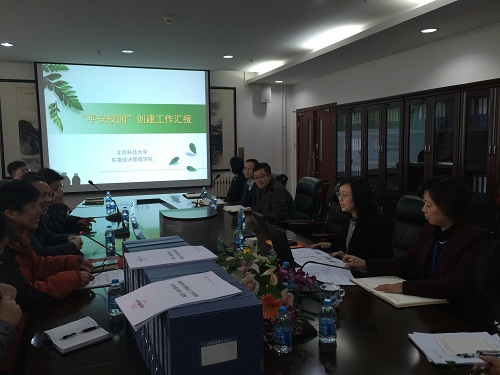 根据《北京科技大学关于开展“平安校园”创建回头看工作实施方案》(校发〔2015〕32号)安排,2015年12月1日星期二下午,由主管安全和稳定工作的副校长王维才、保卫保密处处长刘兴德及校长办公室、宣传部、学生工作部、研究生工作部和资产管理处等部门负责人组成的检查组,对东凌经济管理学院近两年来开展“平安校园”创建工作情况进行检查。学院党委书记戴淑芬、党委副书记刘明珠和温雅、实验信息中心主任张俊光、办公室主任杨志国在经管楼809会议室接待了工作组一行。