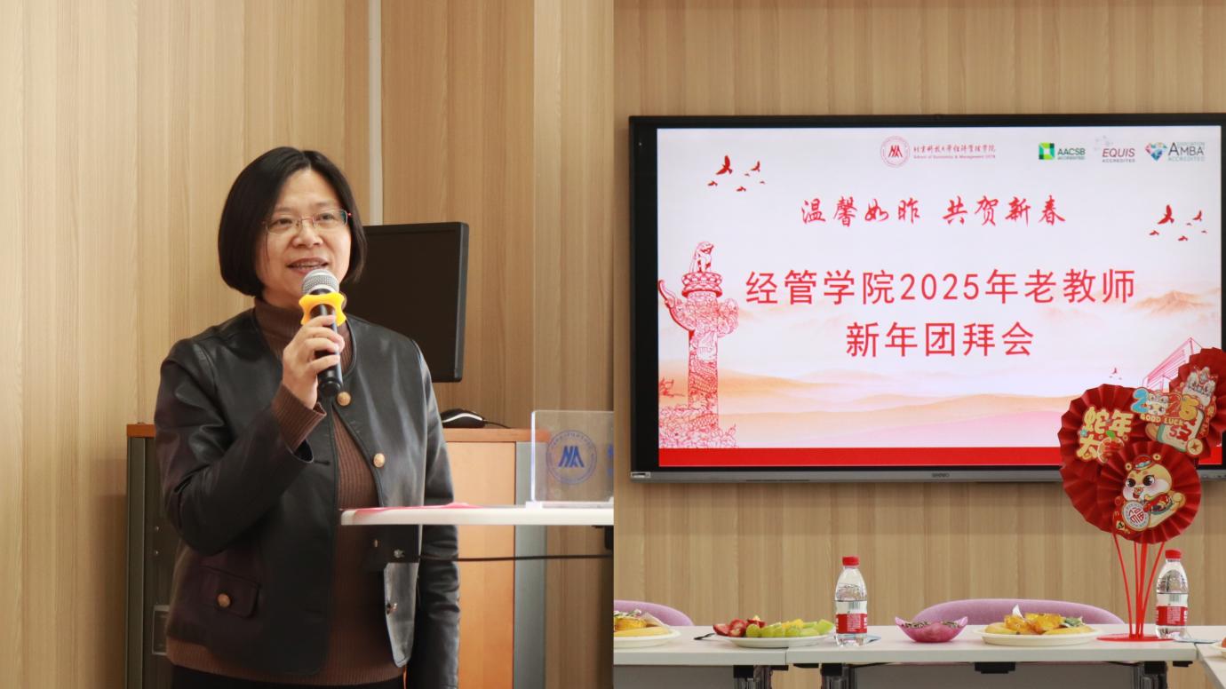在元旦佳节来临之际,为弘扬尊师重教的传统美德,促进学院文化建设,经济管理学院于12月31日在经管楼1205成功举办了以“温暖如昨共贺新春携手并进共创辉煌”为主题的老教师新年团拜会。