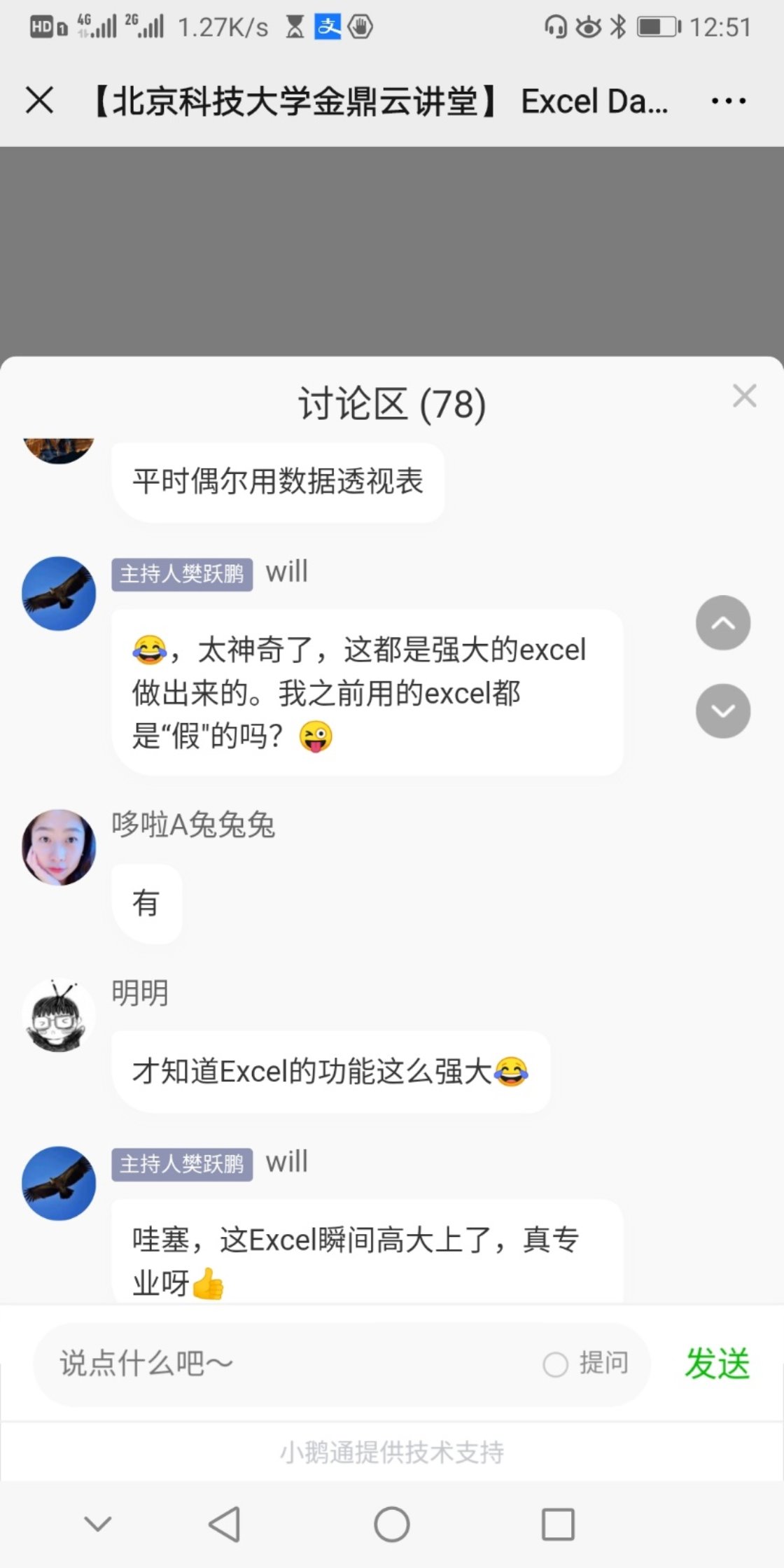 各位同学,如果错过了本次精彩直播,没关系,你可以扫描文中二维码收看视频回放,还可以加入Excel学习群,和裴老师以及其他小伙伴共同探讨交流学习。北京科技大学“金鼎云讲堂”还将持续推出更多精彩的线上讲座,丰富大家的学习生活,敬请大家持续关注。
