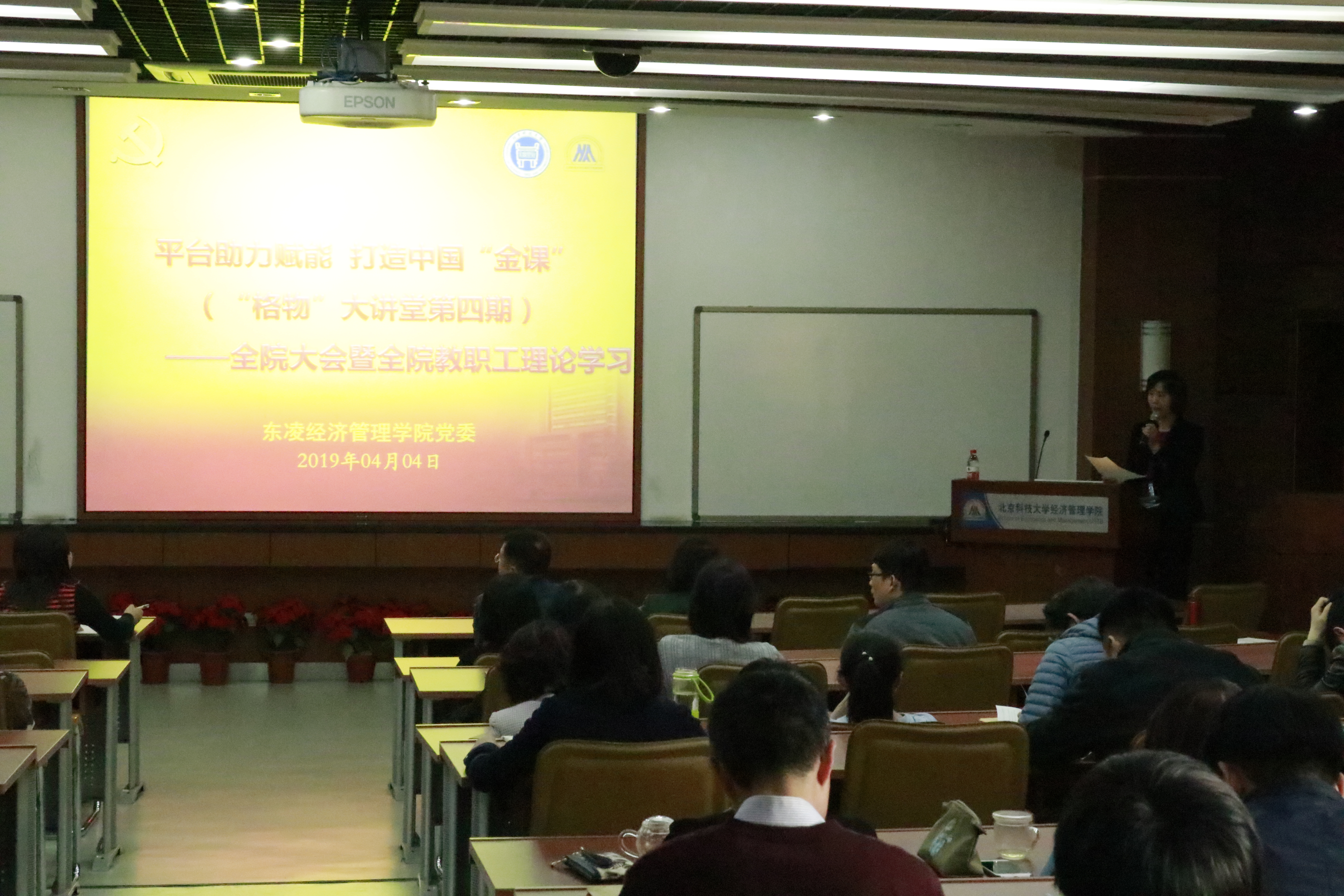 2019年4月4日星期四下午3点半,东凌经济管理学院全院大会暨全体教职工专题理论学习会在经管楼313召开。