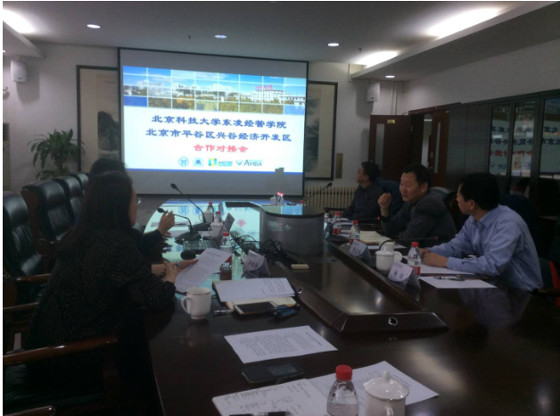 北京科技大学东凌经济管理学院与北京市平谷区兴谷经济开发区合作对接会于2018年12月20日下午2点在经管楼809成功举行