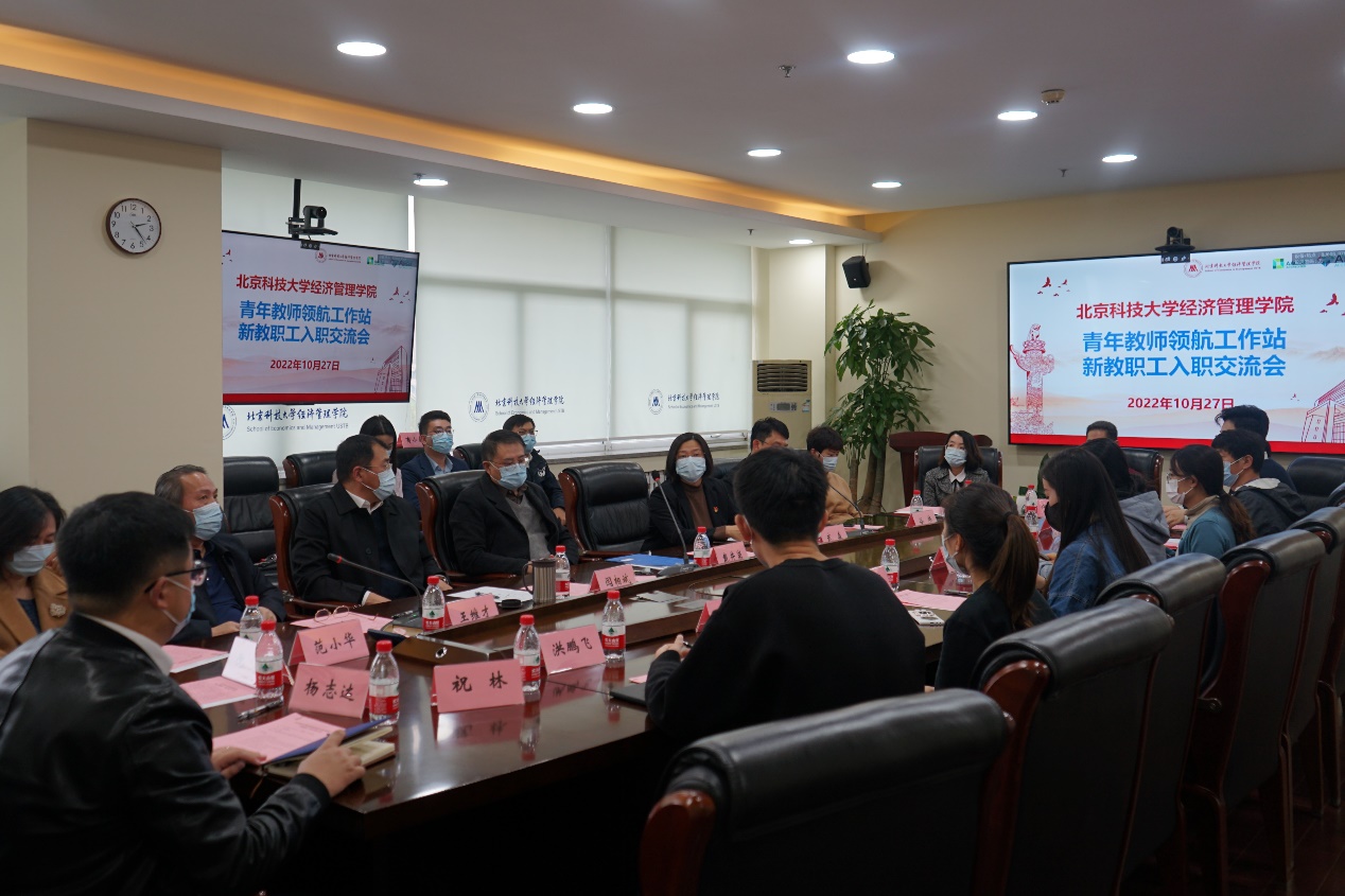 2022年10月27日下午,北京科技大学经济管理学院青年教师领航工作站新教职工入职交流会在经管楼809隆重举行。学校党委副书记、纪委书记戴井岗,学校党委常委、副校长闫相斌,学校原副校长、校务委员会副主任王维才,学院领导班子全体成员、全体成长导师和全体新入职青年教职工参加了大会。会议由学院党委书记武森主持。